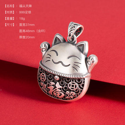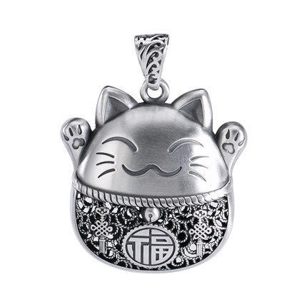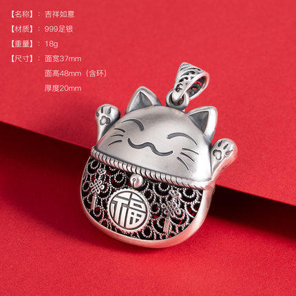 S999 Sterling Silver Foot Silver Necklace Benming Year Necklace Lucky Fortune Fortune Word Retro Lucky Cat Pendant for Men and Women