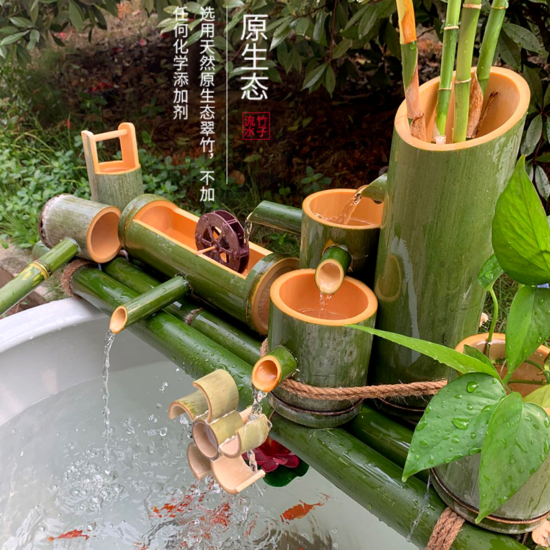 Bamboo barrel water flower fish tank fish basin stone tank fish farming circulation filter fountain feng shui wheeler oxygenation humidification ornament