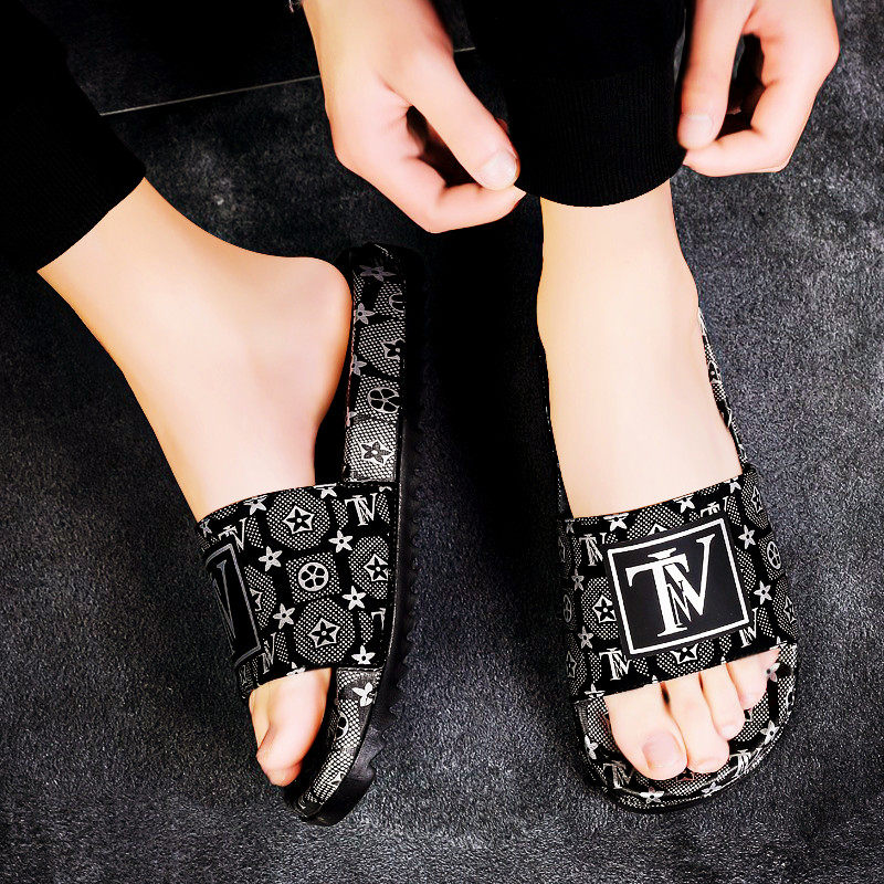 Men's tennis Red slippers Male Trend Korean version outdoor wearing 2022 New word drag Summer individuality beach sandals