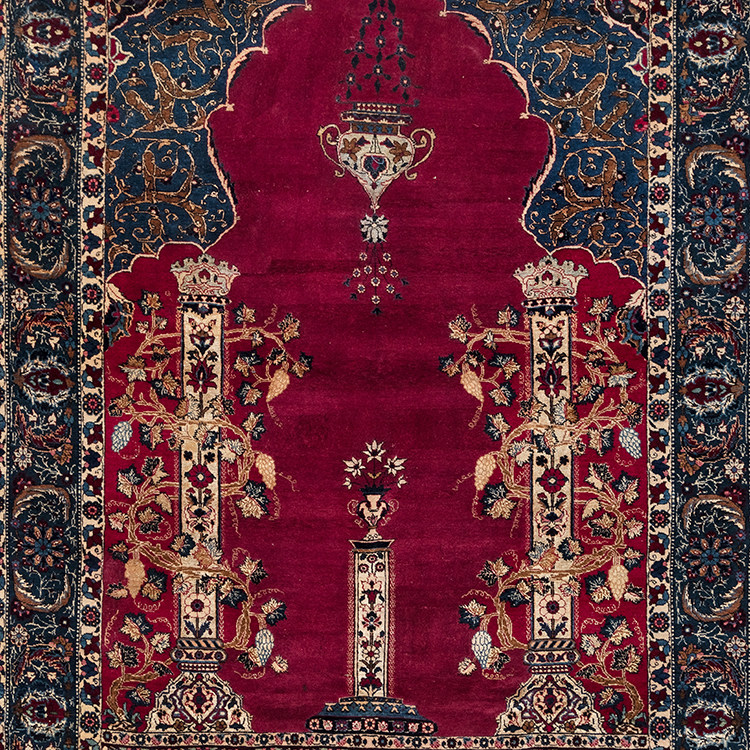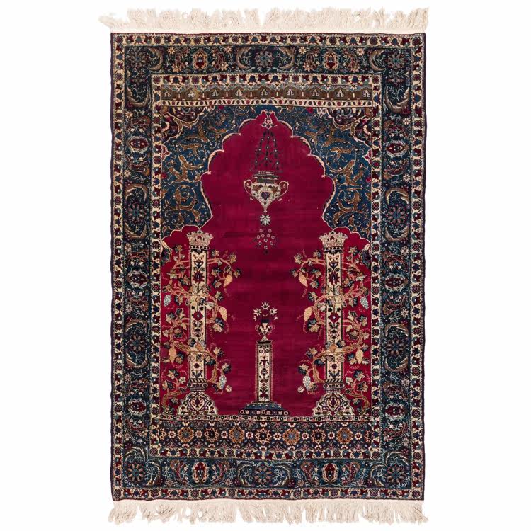 West Dike-Antique Rug -- hand knotted wool plus true silk Islamic prayer blanket kneeling blanket Persian rug-Taobao
