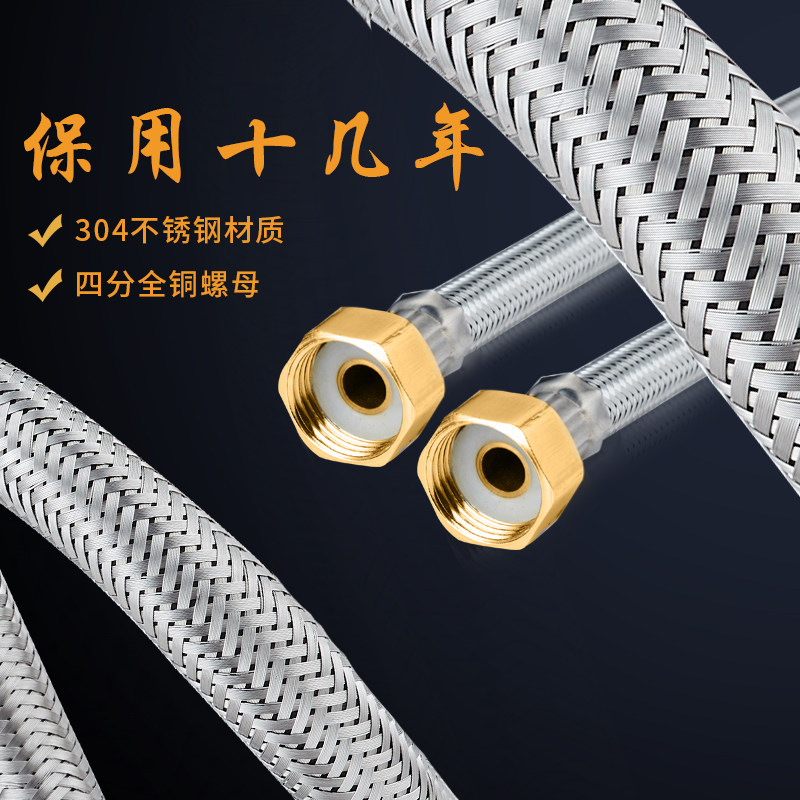 Woven pipe 304 stainless steel metal thickened hot and cold water inlet pipe toilet water heater connecting pipe 4 points household hose