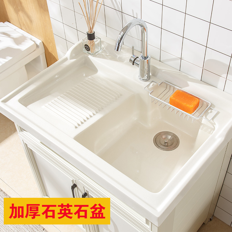 Balcony Space Aluminum Wash Wardrobe Quartz Stone Pool Laundry Pool With Washboard Water Laundry Basin Sink Integrated Small Family