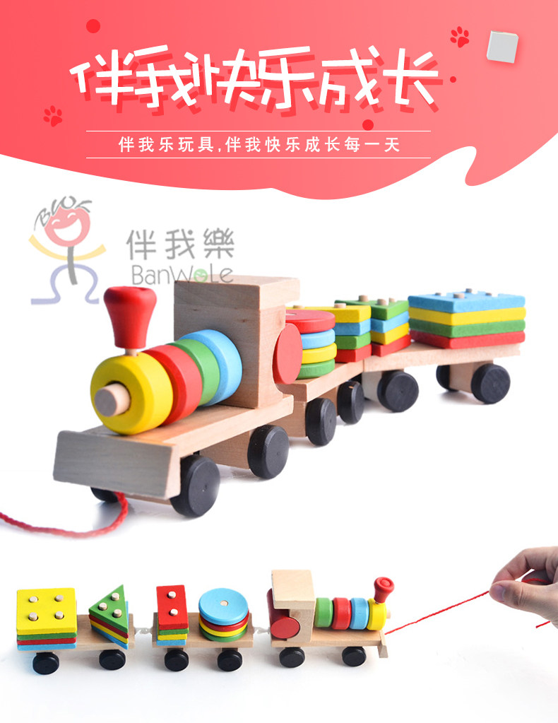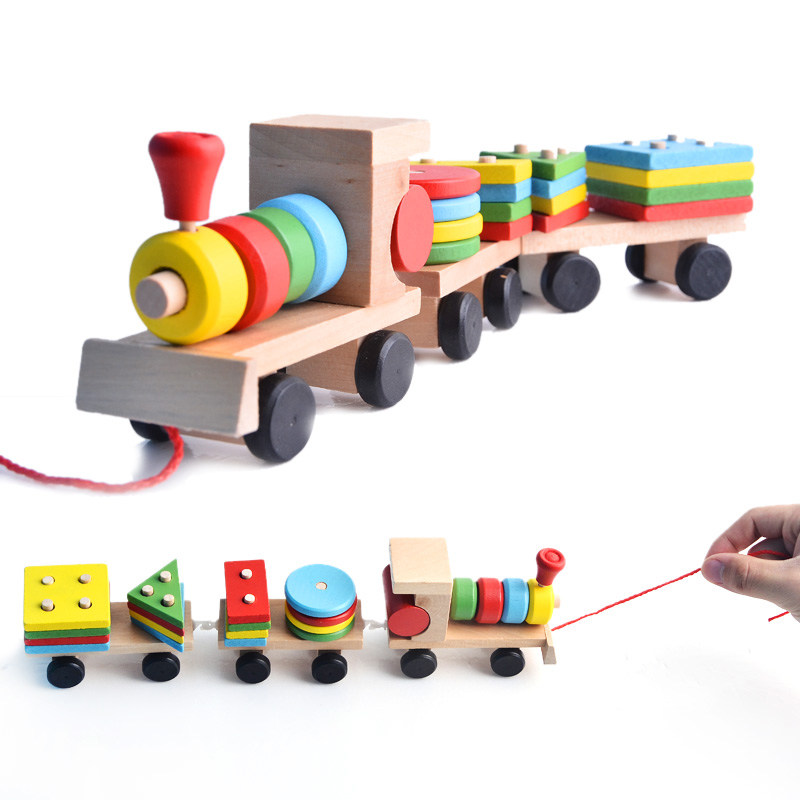 Shape pairing toy Four sets of columns Puzzle Geometric Early Teaching Building Blocks Three Small Train Babies Wooden Tug Teaching Aids