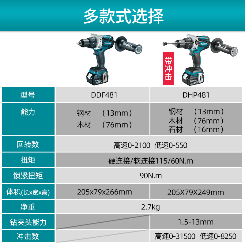 The following is DDF481 without shock function undrillable wall DDF481 nude muscle no accessories DDF481 single electric placid 3 0A battery Label matching package DDF48