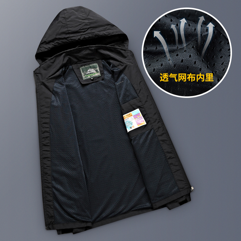 Charge clothing men's popular logo waterproof windbreaker spring and autumn single layer thin coat outdoor men's rainproof breathable mountaineering clothing