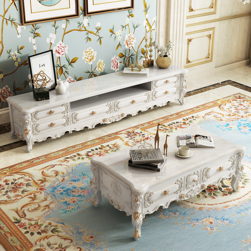 (New in 2022) Modern light luxury TV cabinet European-style marble modern minimalist TV cabinet coffee table combination