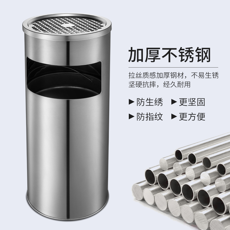 Stainless steel round large commercial garbage can hotel ktv lobby vertical ash bucket elevator entrance high-end outdoor