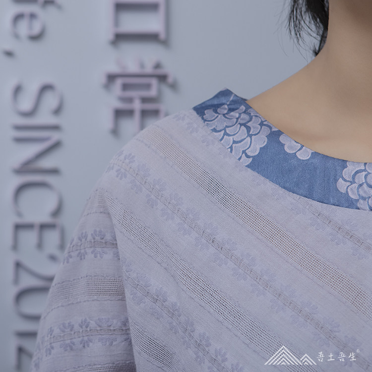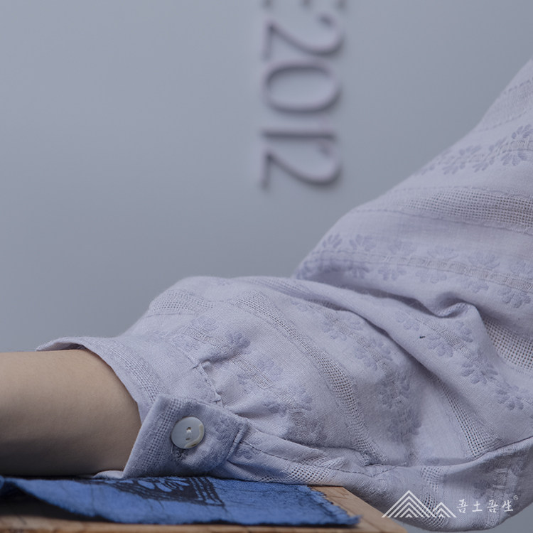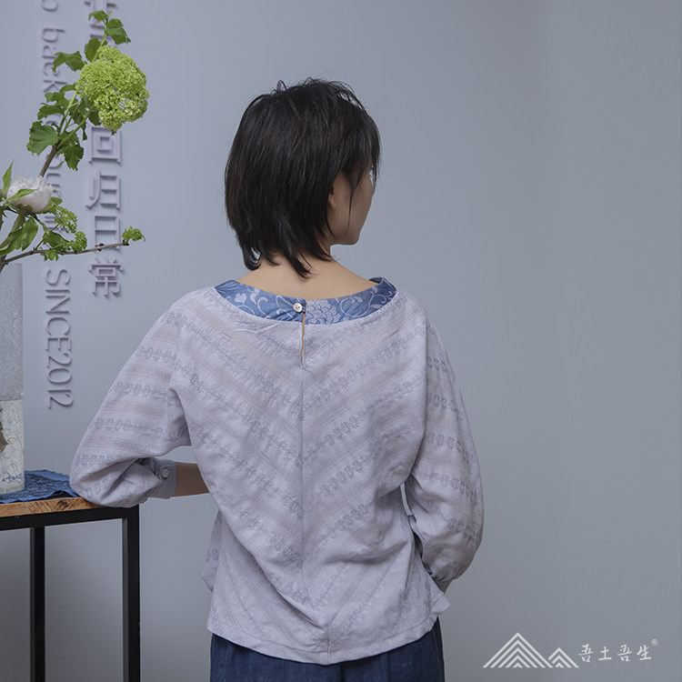 My native force Zhou Chun Xia Authentic Silk Handmade Maple Aromas inlaid with pure cotton jacquard purple grey covered head women's shirt