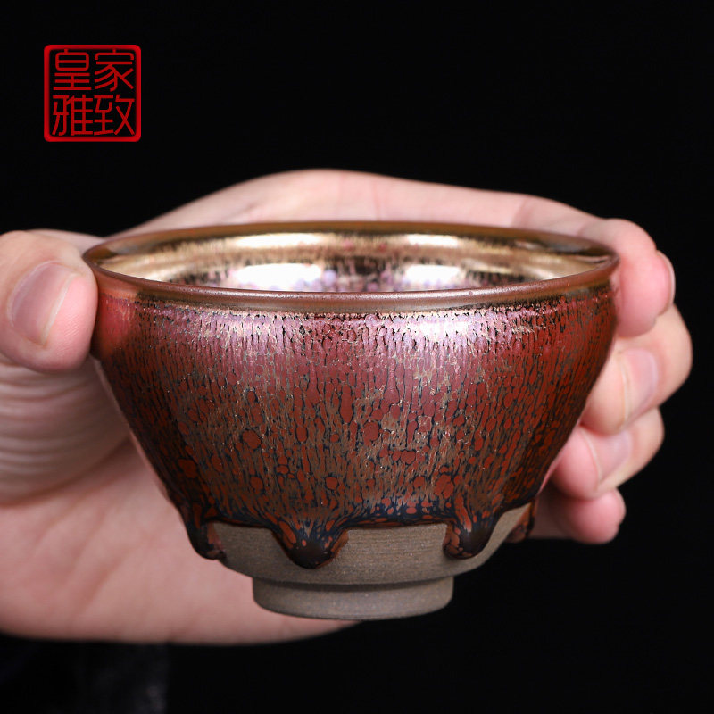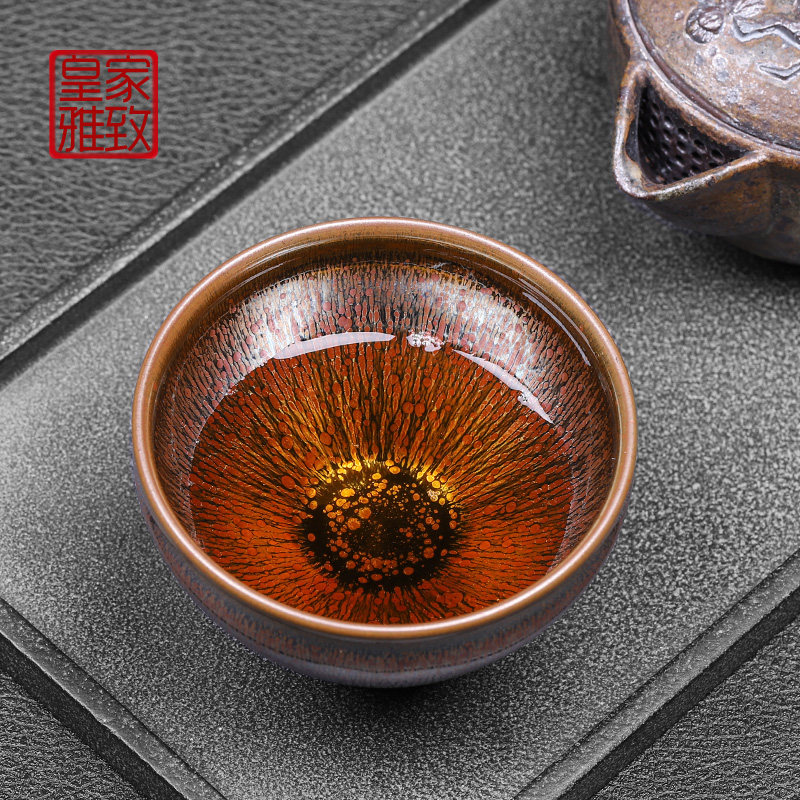 Building Kiln Famous family Wu Zhou Fujian Tea Cup Iron Tire Purple Gold Oil Drop Tea pure handmade single Master's Cup Large Number
