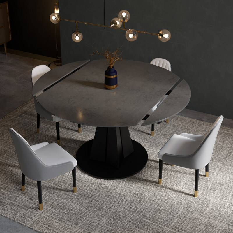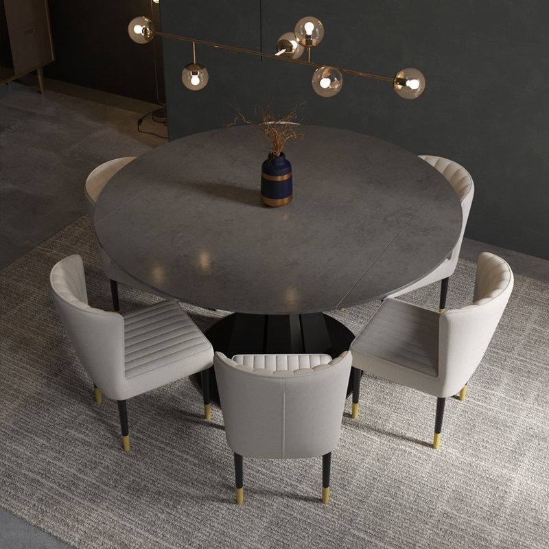 Italian style rock plate modern minimalist telescopic round table light extravagant folding table for home small family type square-round double-purpose dining table