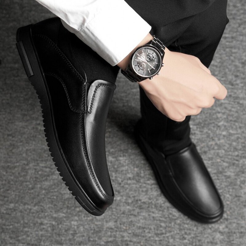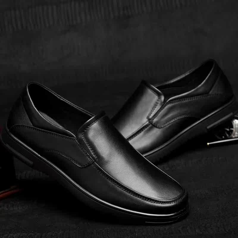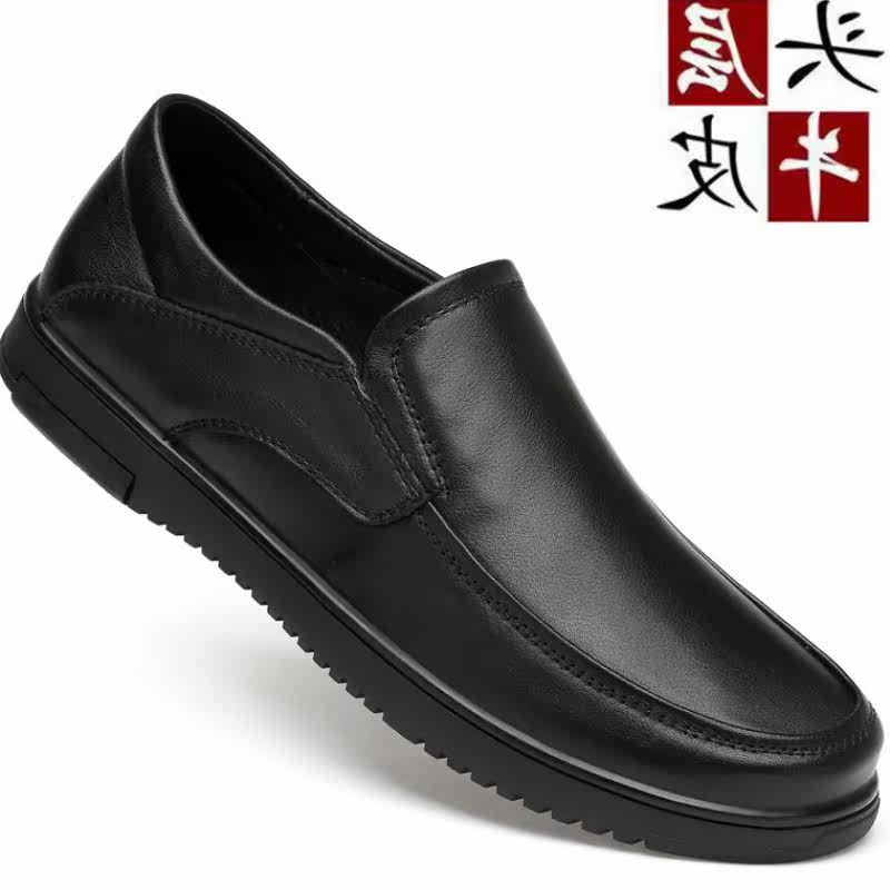 Fall Casual Leather Shoes Genuine Leather Men's Shoes Business Casual Large Size Bean Bean Shoes Soft Bottom Soft Face Middle-aged Dad Sloth Shoes