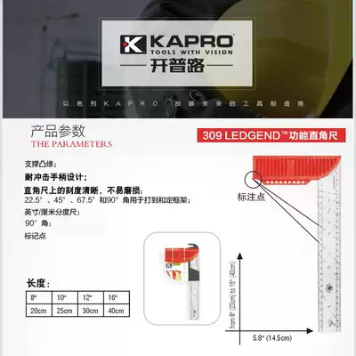 90 degree right angle ruler Stainless steel scribing woodworking multi-function hole ruler combination Israel KAPRO cape road ruler
