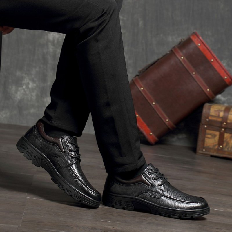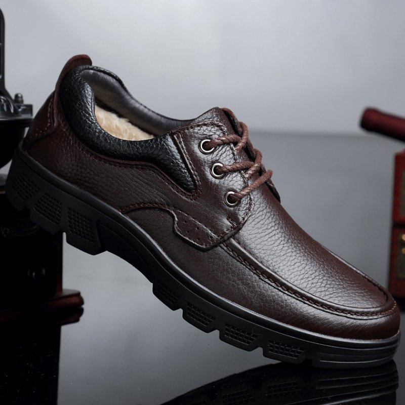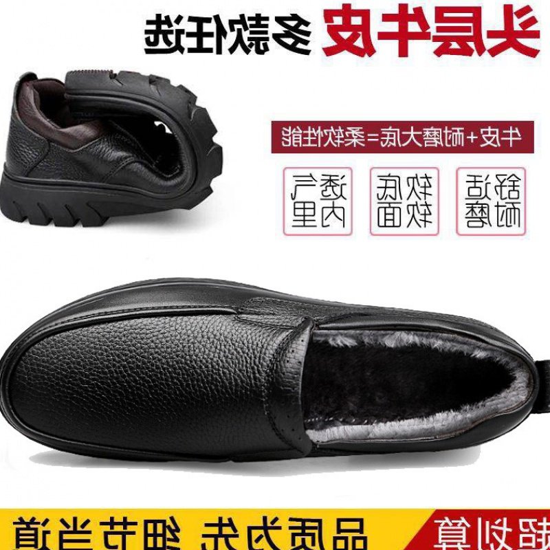 Winter men's shoes Business casual leather shoes men's leather soft bottom non-slip old man in suede cotton shoes Old age daddy Shoe male