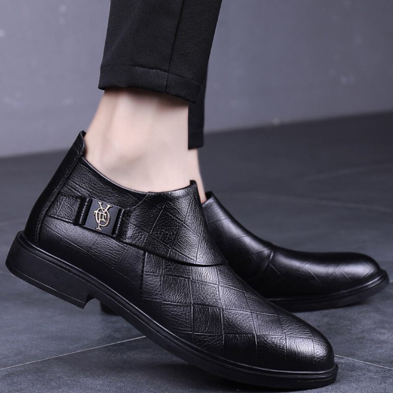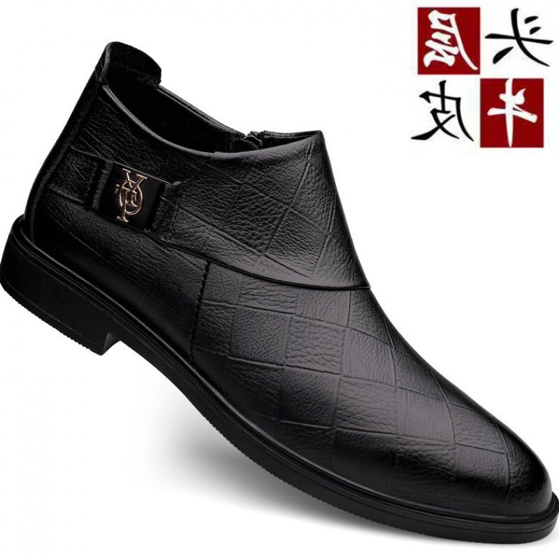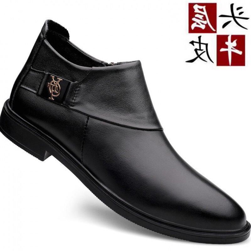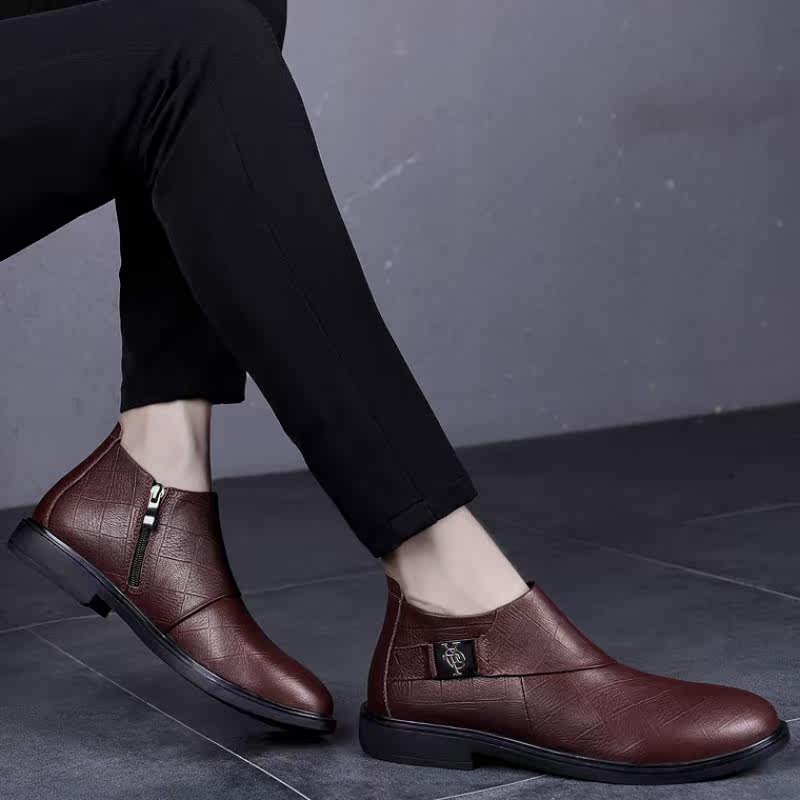 In the winter of 2020 new men's casual leather and Korean version of the trend of warm plus plus velvet male shoe side zipper