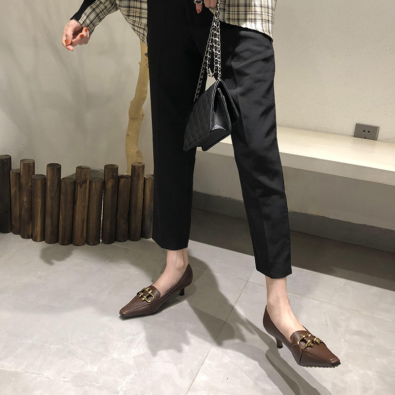 b lizard striped shoes children 2022 new high heel shoes female fine heel small square head one foot pedal spring autumn single shoe heel v