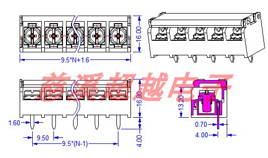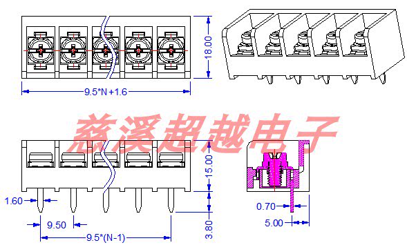 Fence-type wiring end subtable HB-9500 with lid without lid PCB power large torque spacing 9 5mm