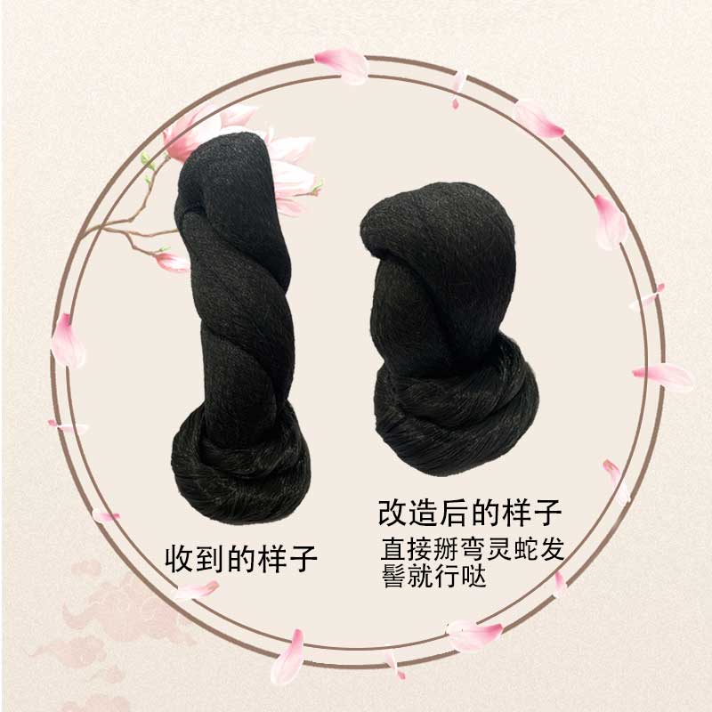 Combination of the same style in the video. Spirit snake hair bun. One card of corn silk is about 60 cm long. The length of four corn silk hair is about 70 cm.