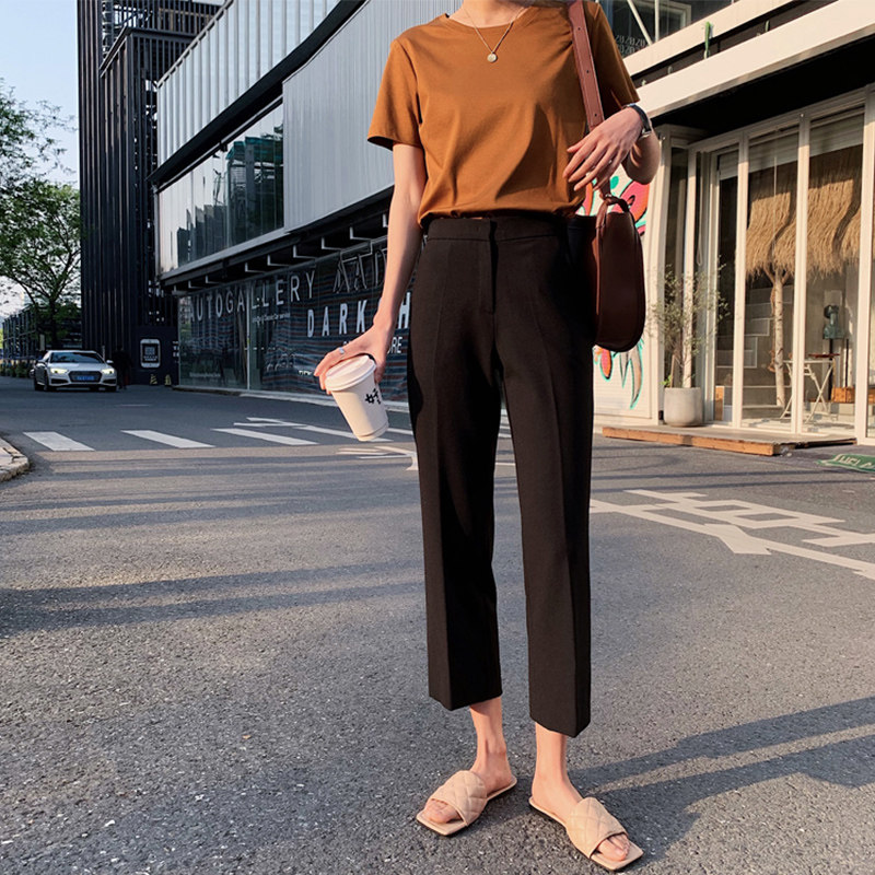 Autumn 2022 new women's high-waisted suit pants women's straight-leg loose nine-point trousers professional pants black wide pants