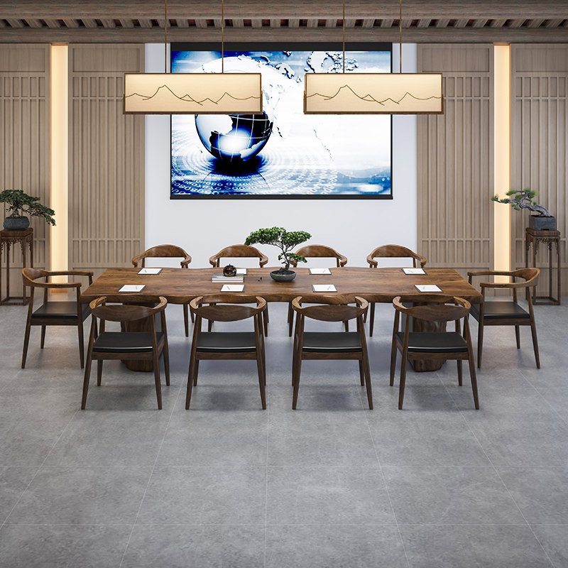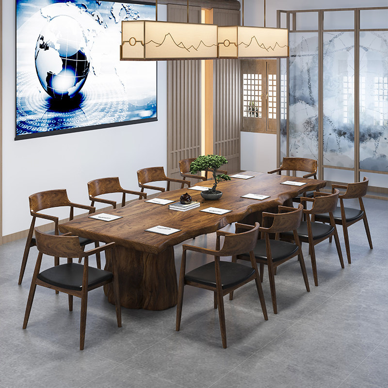 Tea Table Solid Wood Tea Desk New Chinese Meditation Brief Modern Large Class Table Meeting Table Log Large Plate Tea Table And Chairs Combination