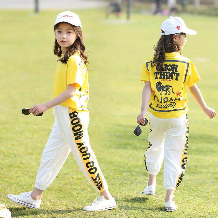Girls' summer air network red suit thin 2023 new childhood summer girls pure cotton short sleeve two sets