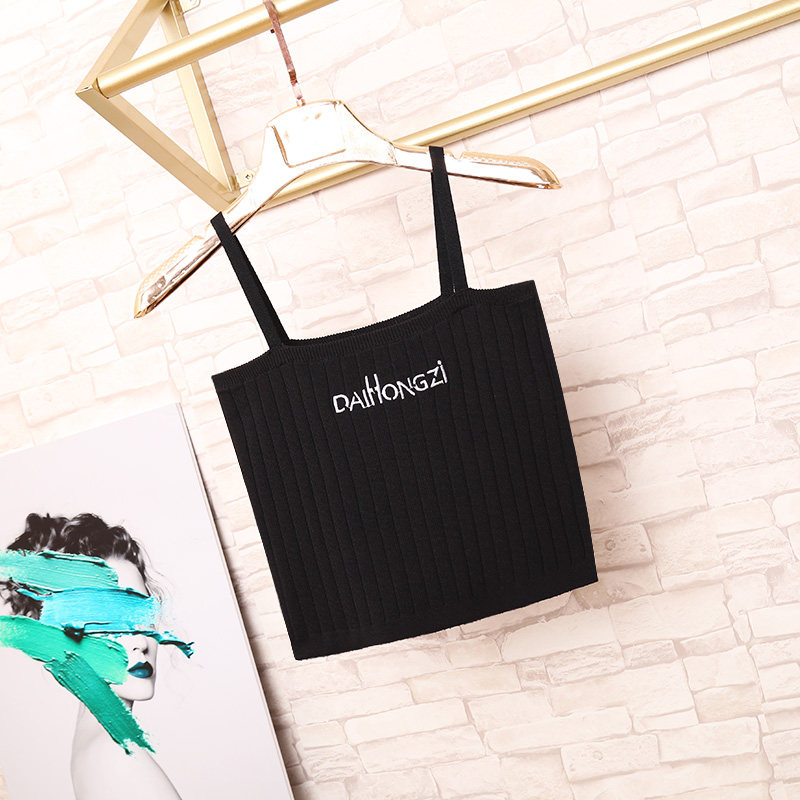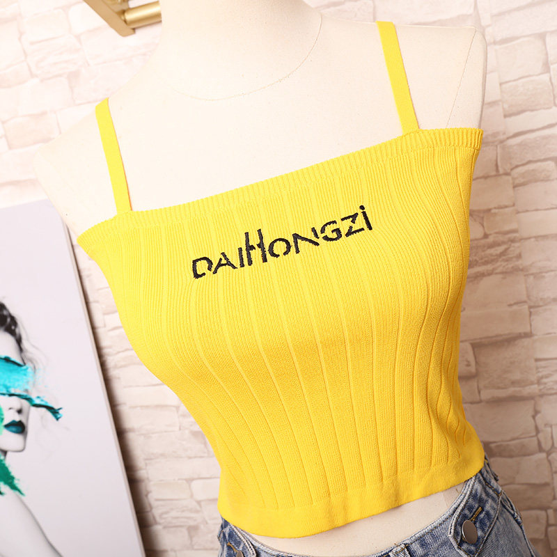 Sexy small camisole female Korean version outer wear embroidered letters all-match knitted net red bottoming tube top short top