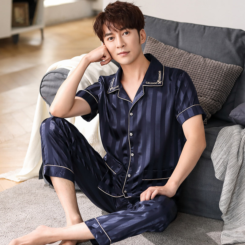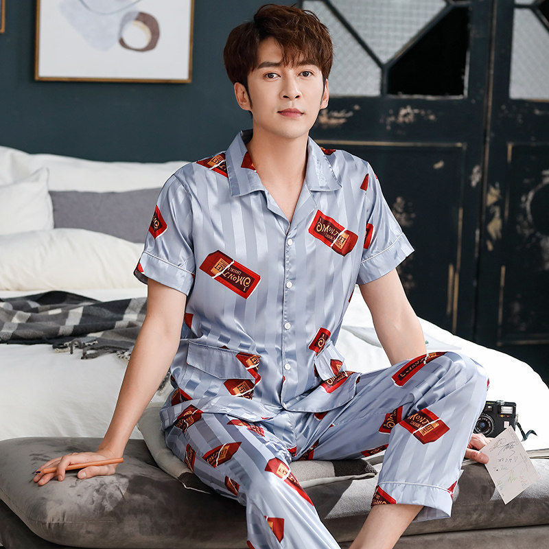 Ice Sleeping Men's Summer Thin Genuine Silk Short Sleeve Long Pants Youth Summer Large Size Casual Home Wear External Wear
