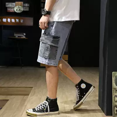 Summer tooling shorts jeans men's Tide brand loose elastic Tide brand ins summer wear thin pants five-point pants tide