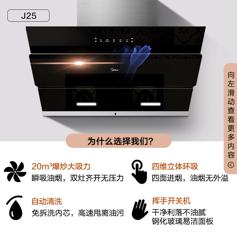 Midea J25 range hood household side suction range hood kitchen large suction hood official top ten brands
