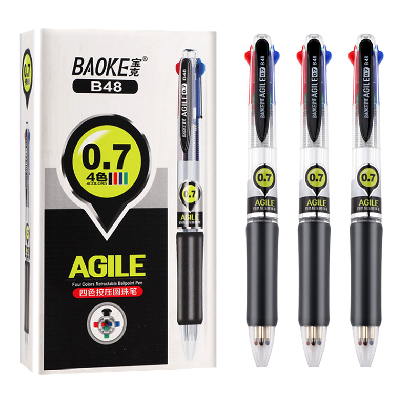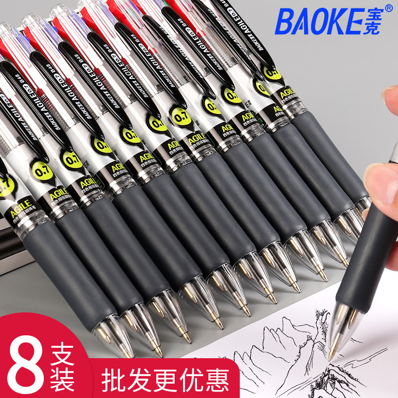 Puck 8 colorful ballpoint pens 4-color press automatic pen colorful atomic pen Multi-color pen all-in-one subwarhead multifunction 0-7mm telescopic press-type oil pen Three-color middle sex pen core Wholesale