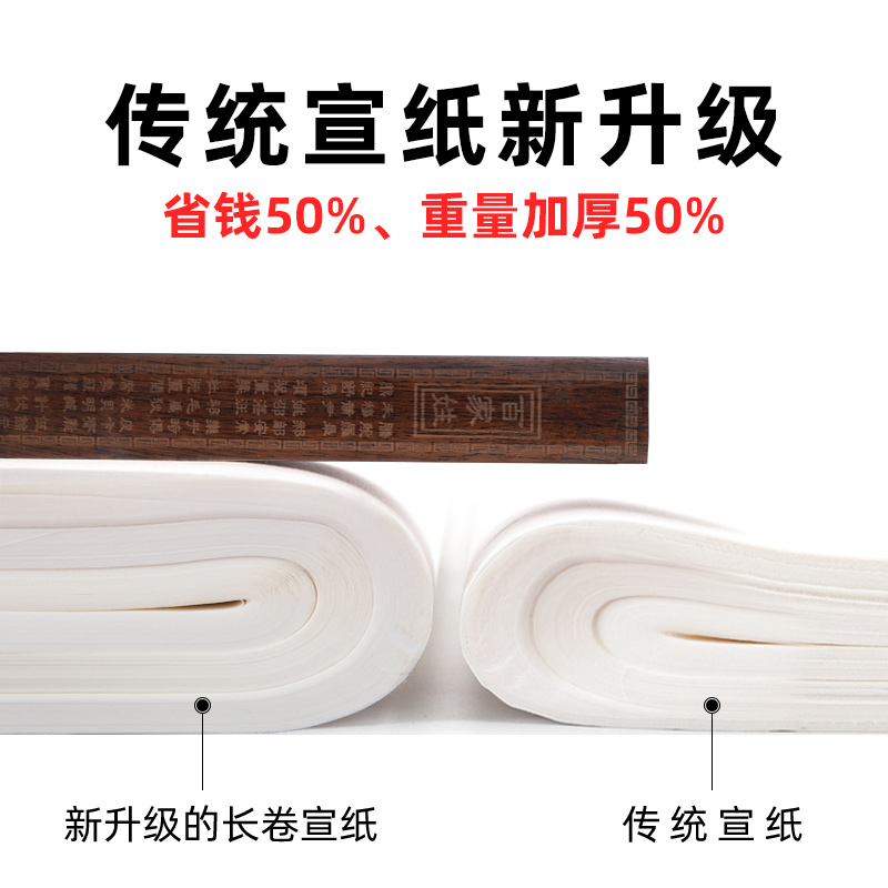 Rice paper long roll 100 meters work paper half-cooked and half-cooked thickened raw Xuanshu Xuan antique 100-meter calligraphy special brush paper Chinese painting small regular strokes beginner practice word roll toilet paper roll practice paper