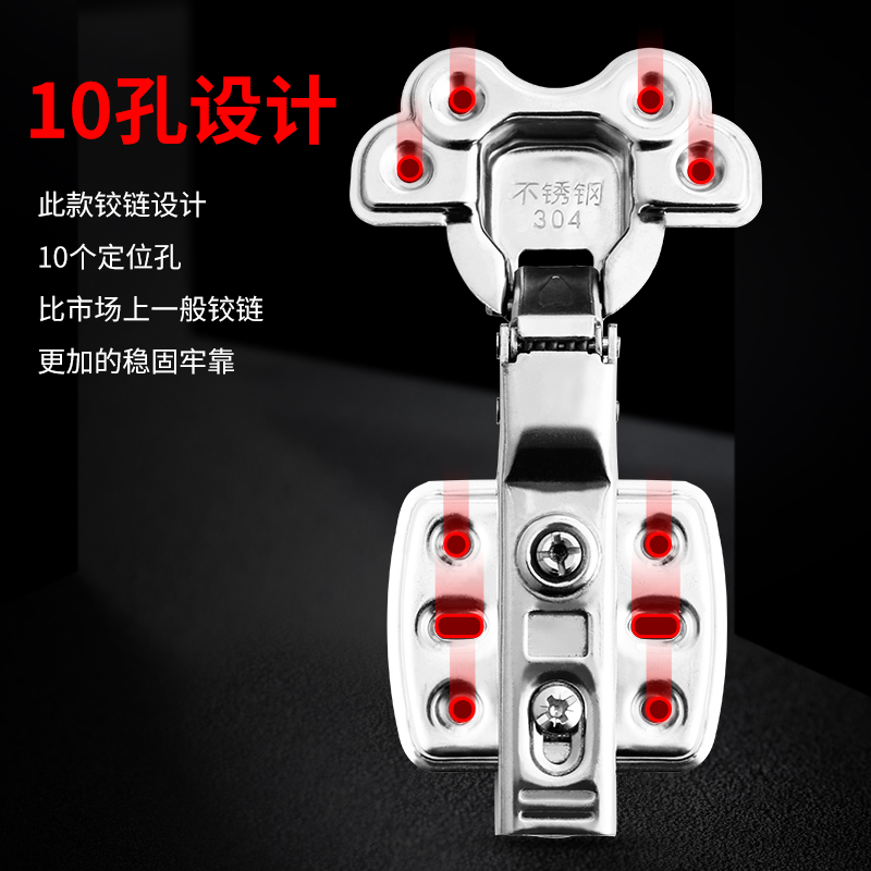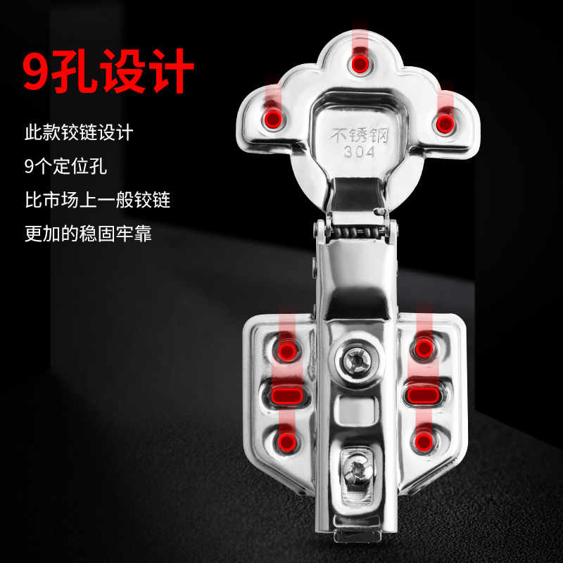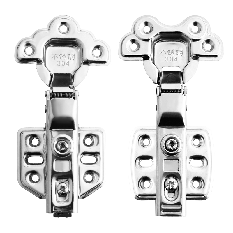 Hinge 304 stainless steel plum three-hole head aircraft hinge Hydraulic buffer damping integral cabinet hinge Wardrobe bend