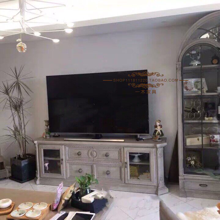 art building revival TV cabinet American solid wood engraving TV cabinet European-style living-room retro for old storage cabinets