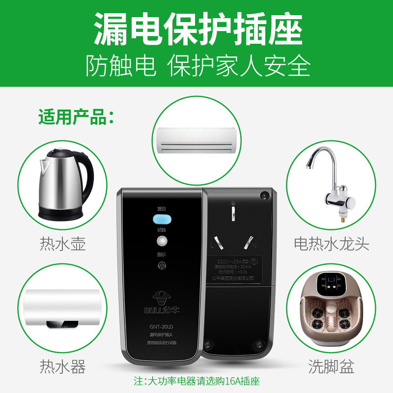 Bull Earth Leakage Protector Plug Electric Water Heater 16a wiring leakproof switch Home 10a Anti-leakage socket