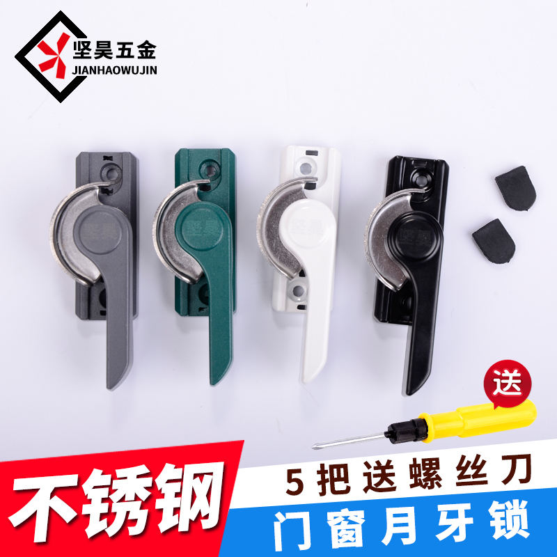 Add the slope of lunar tooth lock aluminum alloy window lock and lock door and window accessories half month hook lock anti - theft lock