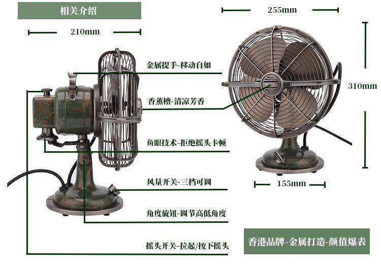 Hong Kong IMASU retro metal electric fan home art mute air circulation desktop fan shaking head table fan