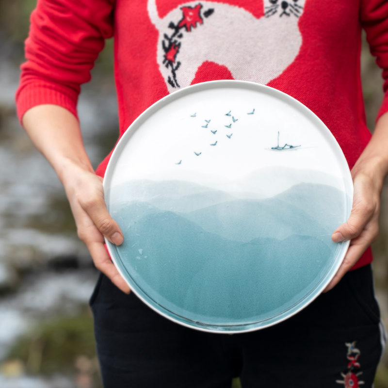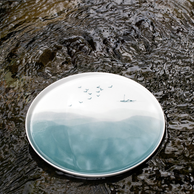 Landscape Landscapes Tea Tray Artist Hand-painted Ink ceramic Tea tray Tea Road Zero-worthy plate disc Home