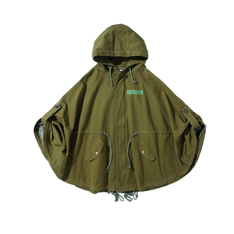 TRIPPY retro military style cloak sleeveless trench coat coat men and women with military green black
