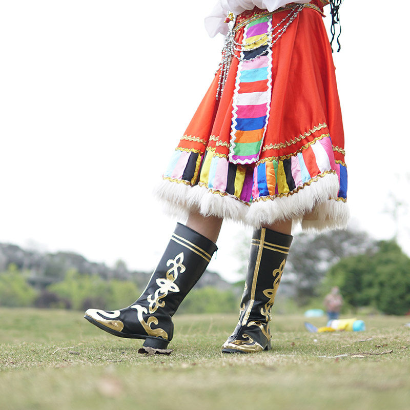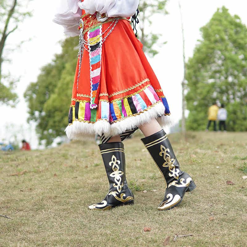 Xinjiang dance shoes Tibetan Mongolian Uyghur ethnic dance boots Drum Seedlings Song High Barrel Prairie Horse Boots men and women