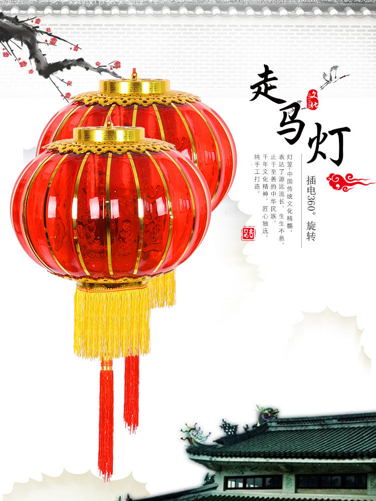 Large red crystal plug-in electric walking coal oil lamp small lantern hanging decoration Joe relocating Moving Wedding Plastic Rotating Balcony Lantern