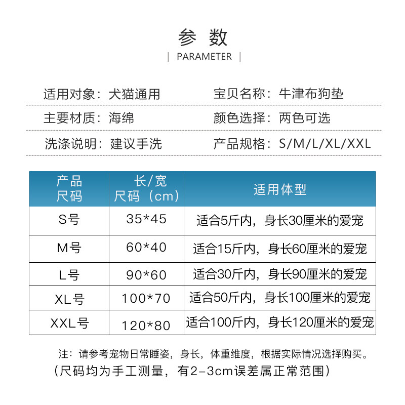 45 45 x 35 suitable for less than 5 catties (beat two hair three) 60 40 40 suitable for less than 15 kilos (beat with two hair three) 90 x 60 suitable for dogs 30 100 × 70 suitable for 50 catties