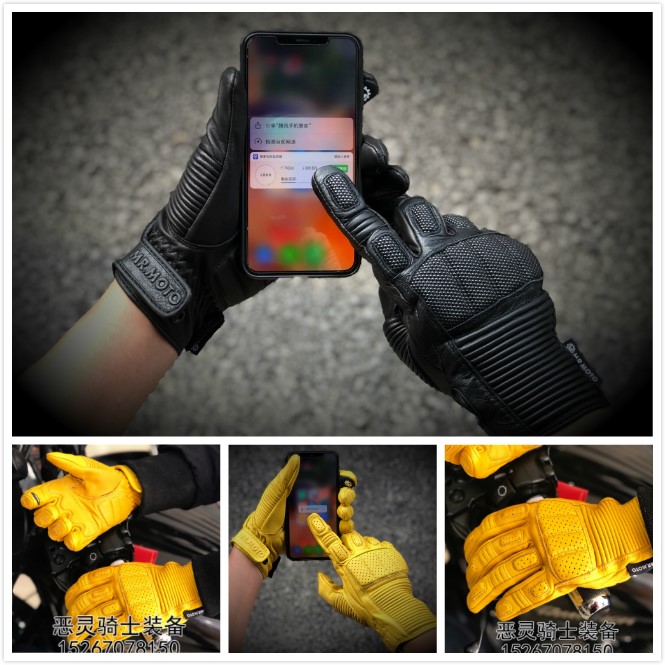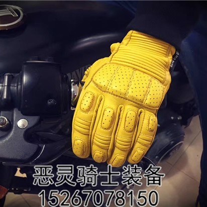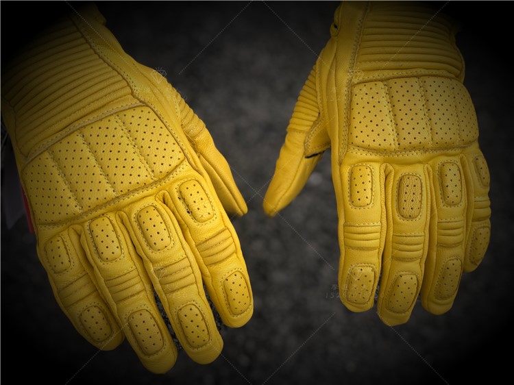Spot Harley locomotive men and women gloves with touch screen grab iron BMW retro yellow black anti-fall full finger leather gloves
