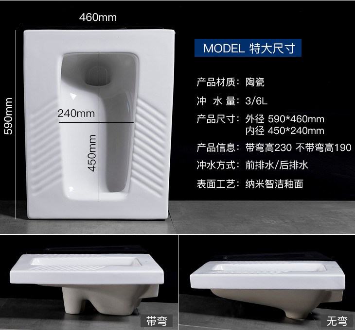 (extra-large size) with bent front drainage tank (extra-large size) with bent rear drain tank (extra-large size) No bends rear drain tank (extra-large size) No bend front drainage water tank (large size)