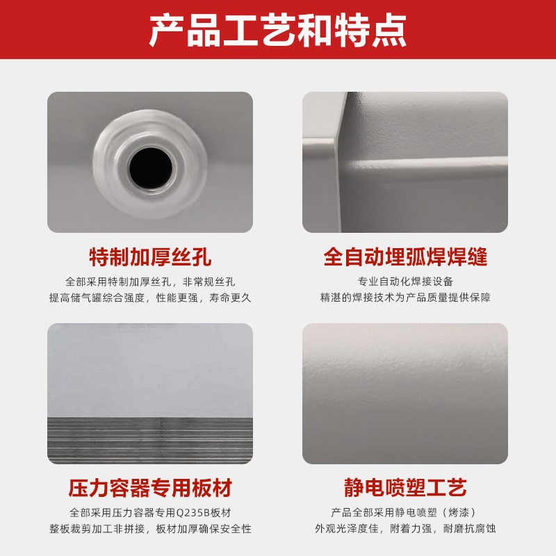 Vacuum pressure vessel tank for small horizontal compressed air buffer tank air compressor storage tank