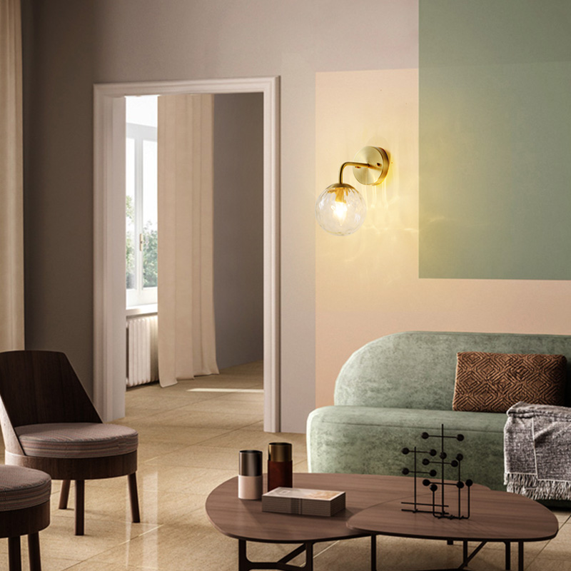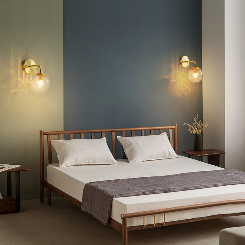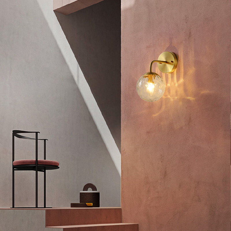 All copper glass wall lamp simple modern super bright bedroom bedside lamp personality creative water ripple lampshade background wall lamp