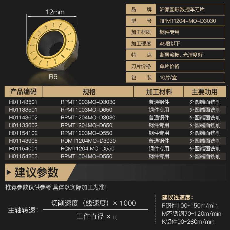 CNC milling blade R5 R6 R8 round blade RPMW1003MO RPMT1204 RDMT1204MO steel parts