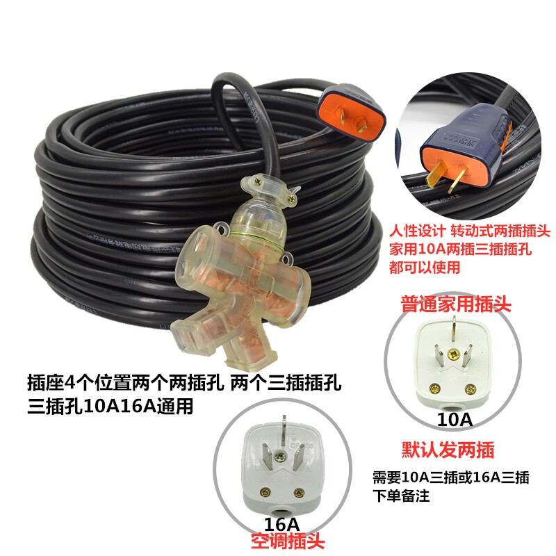 Waterproof extended extension cord 5 10 25 30 meters power cord can not be broken plug-in board engineering ground mop terminal board socket