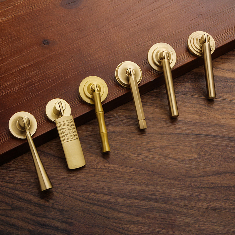 New Chinese cabinet door handle full copper solid single hole light lavish brass furniture hardware wardrobe cabinet drawer door handle