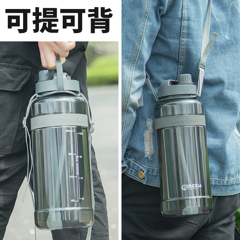 Extra - large capacity plastic cup with straw men and women outdoor portable space cup sports large kettle 2000ml