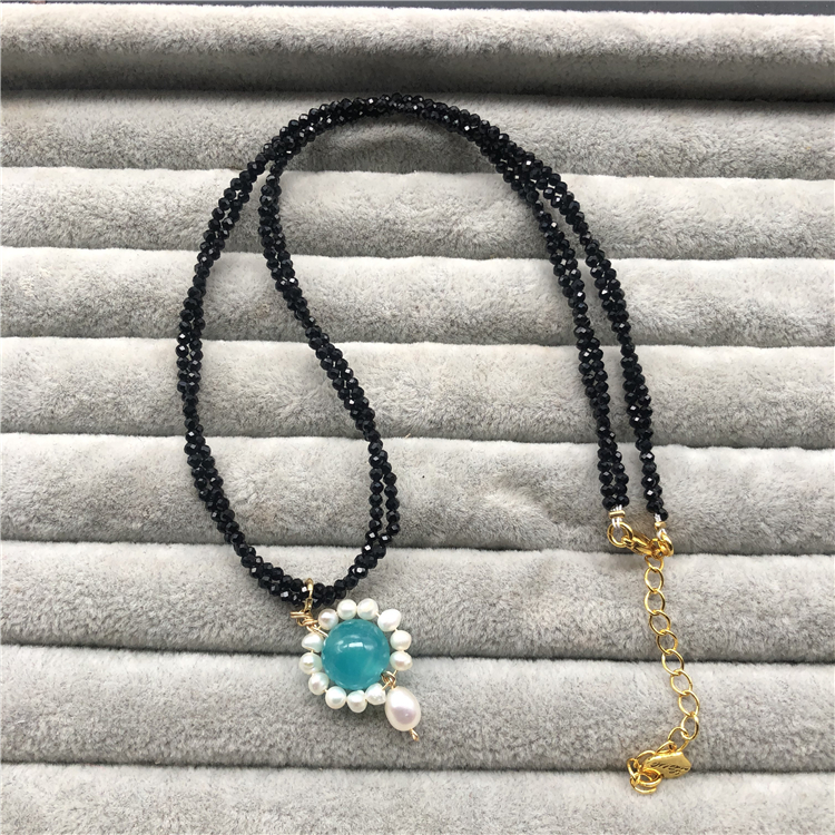 Natural black - spiked crystal chain necklace female with Tianhe pearl pearl inlaid pendant