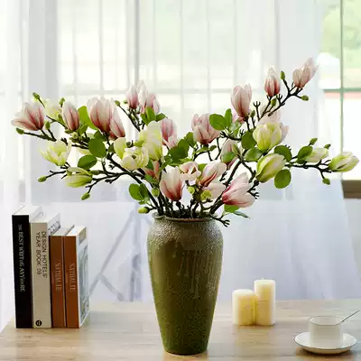 Hand-feeling Bras Magnolia Simulation Bouquet Living Room Table Fare Decoration Floral Set Vase Flower